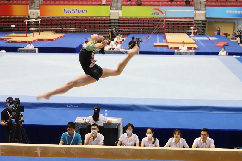 2022年“體總杯”全國(guó)體操團(tuán)體錦標(biāo)賽完成女子賽臺(tái)訓(xùn)練