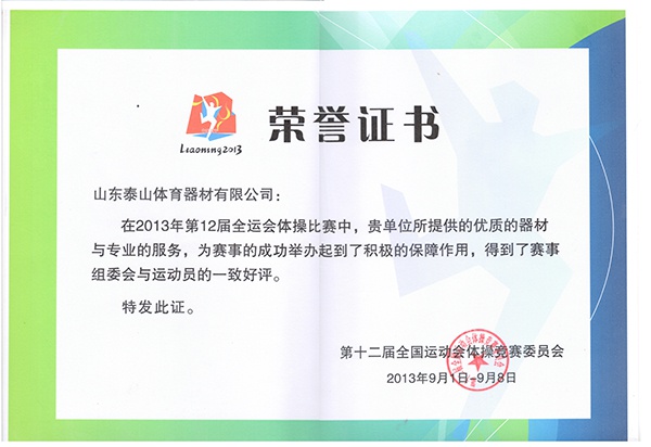 2009年第十一屆全運(yùn)會證書